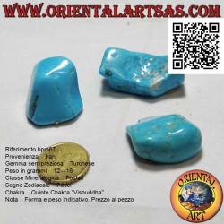 La turquoise est liée aux éléments Terre et Air. Elle est donc considérée comme une pierre capable de conférer stabilité, équilibre et paix. Étant également une pierre d'Air, elle est également capable de stimuler l'intellect et la créativité, augmentant la qualité et la force communicative.Ce n'est pas un hasard si elle est placée sur le chakra de la gorge. Turquoise parvient à clarifier les pensées et à les faire circuler librement à travers la voix. Il est également considéré comme une amulette porte-bonheur en voyage.