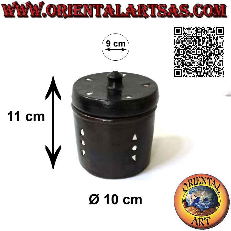 Boîte à bijoux cylindrique avec gravures florales en bambou et...