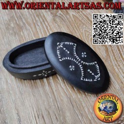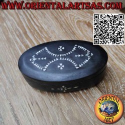 Boîte ovale en bois d'acajou et incrustations de nacre, Lombok Indonésie