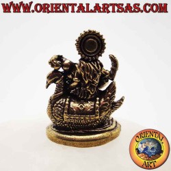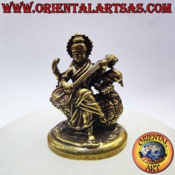 Raffinée statue en laiton représentant la déesse indienne Saraswati assise sur son cygne sacré. Symbole de connaissance, musique, arts et sagesse, Saraswati est vénérée comme mère des Vedas. Parfaite comme objet de collection, pour autel ou porte-bonheur. Dimensions 32x24x20 mm, poids 28 grammes.