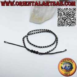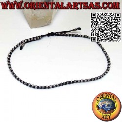 Anklet made of macramé-worked waxed cord with knotted hypoallergenic 925‰ silver nuggets without nickel, extendable by about 8 cm. to wear it