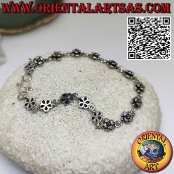 Bracelet with a row of sixteen roses in hypoallergenic nickel free 925‰ silver. The surface is partially burnished and is not plated, thus ensuring its beauty over the years. unique piece handmade in Thailand by hand