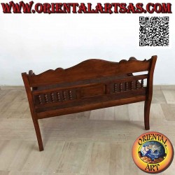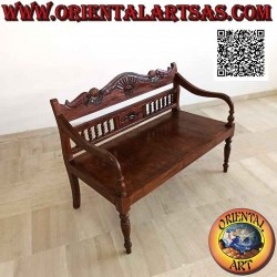 Bench with backrest with columns and hand-carved crown in antique teak wood (indestructible wood does not cause woodworm) also ideal for outdoor patios, gardens etc ..., finished and polished with wax
