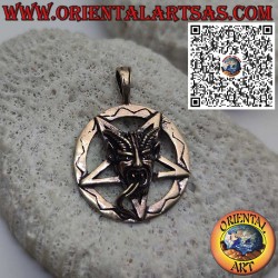 Solid bronze pendant depicting Baphomet at the centre of a pentacle enclosed in a circle. The antique finish enhances the details, giving it an authentic and powerful look. A striking piece, ideal for those who love gothic, occult, or alternative style.