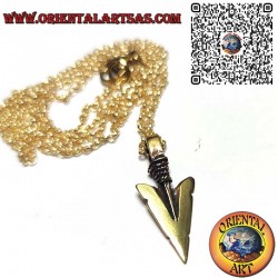 Elegant handcrafted bronze pendant shaped like a small Native American arrowhead—a traditional symbol of strength, courage, and protection. A meaningful talisman featuring deep cultural resonance, perfect as a personal emblem or subtle spiritual connection.