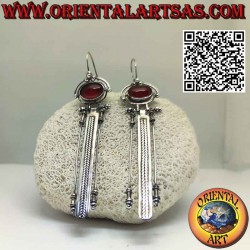 Earrings with a large oval carnelian and three long pendants handmade in Indonesia, made of hypoallergenic 925 ‰ silver by skilled craftsmen.
