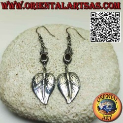 Silver earrings, with oval carnelian and pendant heart-shaped leaf