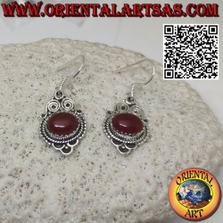 Silver earrings with natural oval carnelian set crosswise in baroque style with two spirals at the top, handmade in hypoallergenic nickel-free 925‰ silver. The surface is partly burnished which guarantees its beauty over the years. (She is not appeased)