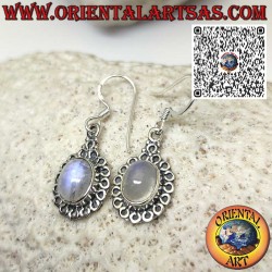 The Moonstone Drop Silver Earrings Surrounded by Balls is an elegant and fascinating jewel. Imagine a delicately polished silver base, carefully crafted to create a perfect frame for the moonstone. The stone itself is the real show: its surface is a play of iridescent colors, ranging from blue to purple, green and gray, creating a rainbow effect that captures the eye and enchants the soul. Wearing these earrings adds a touch of mystery and charm to your figure, while the light dances on the iridescent reflections of the moonstone.