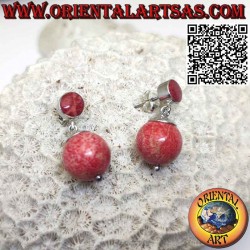 Elegant lobe earrings with pendant ball of red coral from the Indian Ocean handmade in the island of Bali by skilled craftsmen in hypoallergenic 925 ‰ silver. The surface has been oxidized and then polished to ensure its beauty over the years. (the earring is not treated or plated but in solid silver) nickel free.