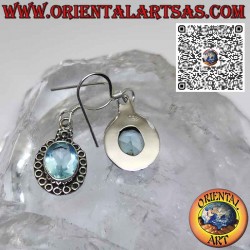 Lobe shuttle silver earrings with natural blue topaz set surrounded...