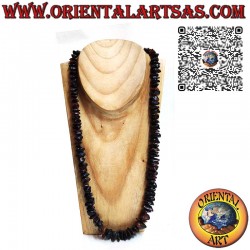 The necklace features dark tones, which can range from deep brown to almost black, with possible variations in shades within each piece of amber.