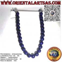 Hermoso hilo compuesto de **lapislázuli natural de Afganistán**, reconocido por su intensidad de color y pureza. Cada esfera, de un generoso diámetro de 16 mm, está cuidadosamente seleccionada por su **calidad AAA**, caracterizada por un **azul profundo y aterciopelado** con **inclusiones de pirita dorada**, típicas de las gemas más preciosas.