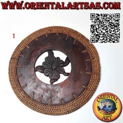 Trivet Round trivet in carved mahogany wood and wicker edge ideal for non-slip hot plates or pans handmade in the island of Lombok Indonesia by skilled craftsmen.