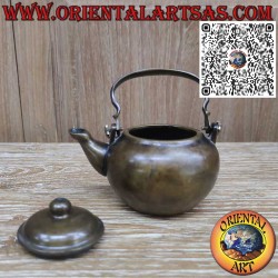 Small teapot in solid brass, handcrafted in Thailand by local artisans. Perfect as a collector's item, for ethnic decor, or as a unique gift. Its traditional design and durable material make it a one-of-a-kind piece that blends elegance, culture, and craftsmanship. Ideal for display shelves, altars, showcases, or oriental-style interiors.
