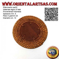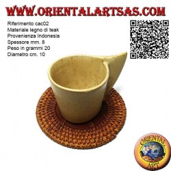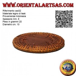 Teak wood materialOrigin IndonesiaThickness mm. 8Weight in grams 20Diameter cm. 10