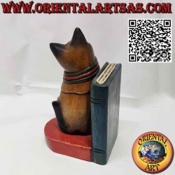 Bookends Cat bookends with bow the handmade colored teak wood made in Northern Thailand by skilled craftsmen