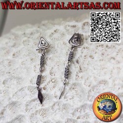 Triangular spiral lobe earrings with intertwined pendants and rhomboidal plate, made of hypoallergenic 925 ‰ silver. The surface is partially burnished to highlight the workmanship and ensure its beauty over the years. (the earring is not treated or plated but in solid silver) nickel free