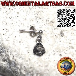 Mini silver earring, with ball and native Indian head with pendant headdress, the symbols of the native Americans