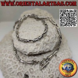 The knit is called "borobudur" or Byzantine knit, which is a typical Indonesian intertwining of threads that forms a characteristic tubular knit, which recalls the Mahāyāna Buddhist monument located in Indonesia. The surface is partially burnished to highlight the decoration, and it is neither treated nor plated so it guarantees its resistance to the passage of time and its brightness.
