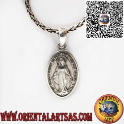 Elegant 925 sterling silver pendant featuring the Miraculous Medal, a symbol of faith and protection. Double-sided design: one side shows the Virgin Mary with the inscription “O Mary conceived without sin, pray for us who have recourse to thee,” while the other bears the Marian monogram with the cross, sacred hearts, and twelve stars. A timeless piece of devotion and craftsmanship.