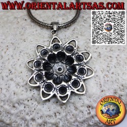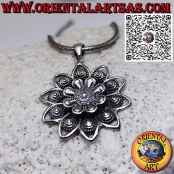 A silver pendant depicting the lotus flower, sacred in Hinduism and Buddhism, is a symbol rich in profound and spiritual meanings. The lotus flower grows in the slime of lakes and rivers, emerging pure and immaculate above the surface of the water, thus symbolizing purity, rebirth and spiritual enlightenment.