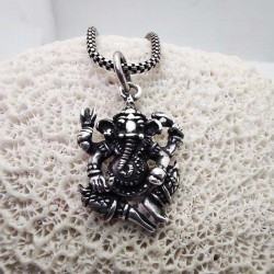 Powerful pendant in Burnished Sterling Silver 925 depicting the Hindu deity Ganesha (the Remover of Obstacles). The dark finish enhances its details, making it an amulet of success, intelligence, and good omen for every new beginning.