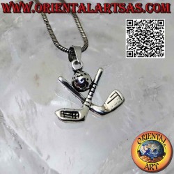 Sporty and refined 925 sterling silver pendant depicting two crossed golf clubs with a central ball. The perfect gift for any golf enthusiast.