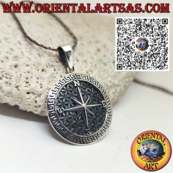 A pendant rich in symbolism, crafted from 925 sterling silver. At the centre lies the Compass Rose, representing guidance, direction, and protection, engraved upon the Flower of Life—an ancient sacred geometry symbol of universal harmony, interconnection, and vital energy.