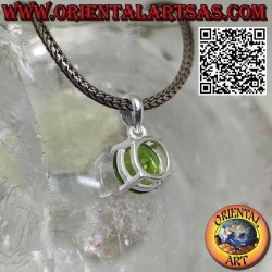 Silver pendant with natural oval peridot surrounded by studs