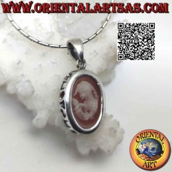 A cameo is a hard gemstone carved in relief so that the figures protrude from a background. The reason here is a young woman.