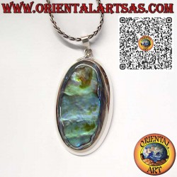 Bright sterling silver pendant with a large natural oval paua shell, set in a smooth bezel. Elegant jewel with unique iridescent colors.