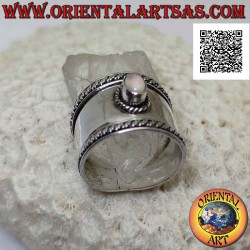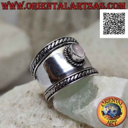 Wide band silver ring with oval rose quartz and interweaving in the contour, Bali