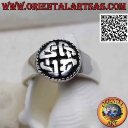 Smooth round silver ring with Duleek knot in bas relief (Celtic symbol)