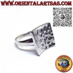 A handcrafted 925 silver ring featuring a concave square shape and a hammered surface. Made by the Karen, an indigenous hill tribe from Southeast Asia renowned for their traditional silver craftsmanship.