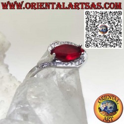 925 sterling silver ring with a marquise-cut garnet set transversely and surrounded by sparkling zirconia. A refined jewel, symbol of passion and elegance.