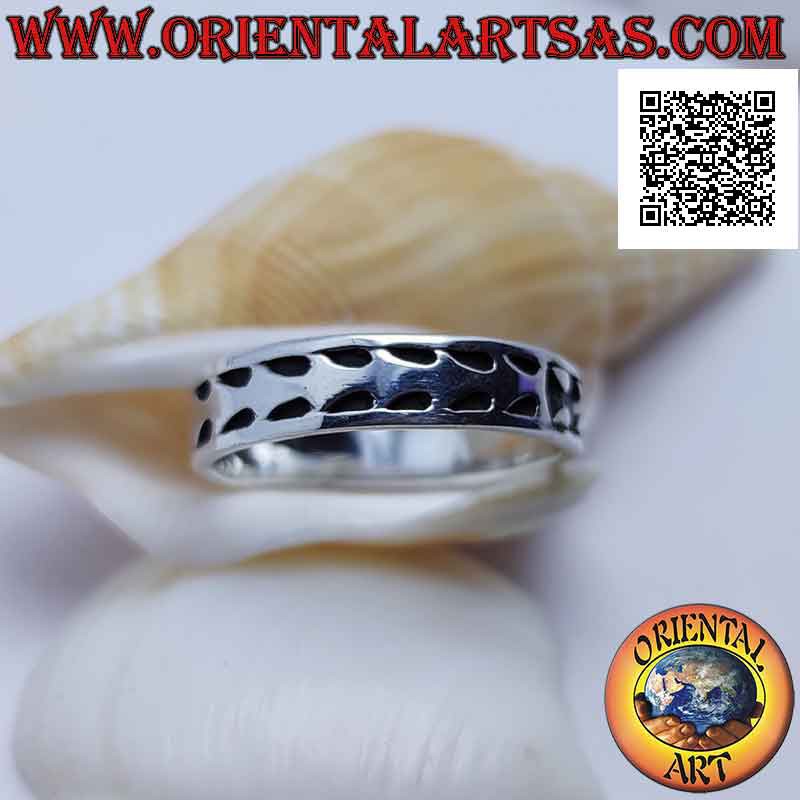 Silver ring with a positive and negative drawing of arrows in bas-relief