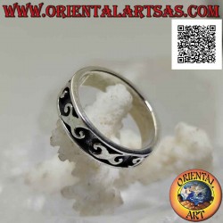 Silver band ring worked with a series of Greek letter "Chi" (X) in bas-relief
