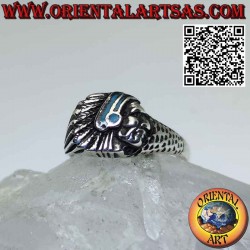 Beautiful Ring with Indian head (native of America) in profile with turquoise made in solid hypoallergenic 925 ‰ silver. The surface is partially burnished to highlight the workmanship and ensure its beauty over the years. Nickel free