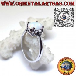 Silver ring with teardrop harlequin opal set surrounded by white...