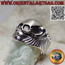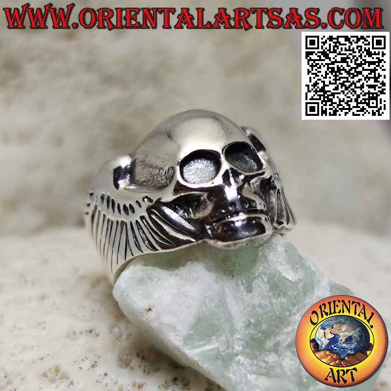 Silver ring in the shape of a skull without eyes and with wings on the sides