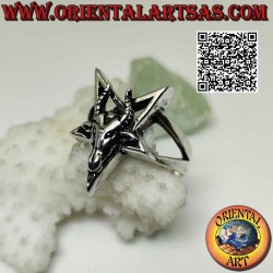 Silver ring, inverted pentacle with Baphomet (Baphomet) "the Goat of Mendes" superimposed