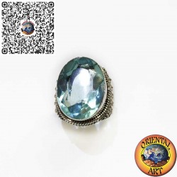 Elegant 925 sterling silver wide band ring featuring aoval blue topaz surrounded by delicate silver beads. The blue topaz is known as a stone of calm and clarity, promoting inner peace and honest communication. A bold and refined piece, perfect for those who appreciate craftsmanship and meaningful beauty.