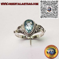 Refined Sterling Silver 925 ring adorned with a natural pear-cut Topaz. The design is characterized by a sinuous side spiral, making it a jewel of symbolic and timeless elegance.