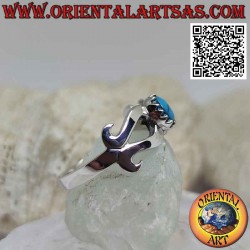 Silver ring with turquoise set in the center of a smooth infinity