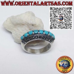 Elegant sterling silver band ring (925) featuring a central row of turquoise framed by two lines of marcasite. A refined, vintage-style design perfect for those who appreciate classic jewelry with character.