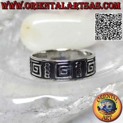 Silver band ring worked with a series of smooth squared spirals in bas-relief