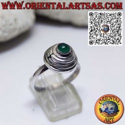 925 ‰ silver ring with cone spiral surmounted by a round green agate made by a skilled craftsman in Indonesia