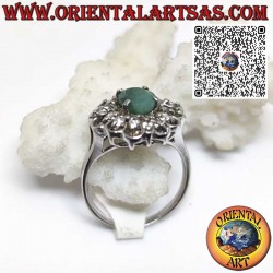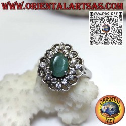 Celebrate classic elegance with the "Queen" Ring, a sophisticated and visually striking piece of jewellery. This ring is crafted from Sterling Silver 925 and finished with Rhodium plating to prevent tarnishing and ensure a shine comparable to white gold. At its center shines a magnificent Natural Oval Cut Emerald, whose deep green hue symbolizes hope and renewal. The emerald is framed by a radiant Zirconia halo (Halo design) which amplifies its brilliance and dimensional perception. The additional detail of the circle (Halo) studded with small zirconias makes the ring a true statement of light on the finger. Ideal for a special gift, to celebrate a birthday (May Birthstone), or to add a touch of discrete luxury to your everyday look. An expression of craftsmanship that combines the beauty of the natural gemstone with the luminosity of silver. Material: 925 Sterling Silver. Main Stone: Natural Oval Emerald. Secondary Stones: White Brilliant-Cut Zirconia.