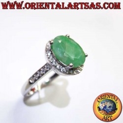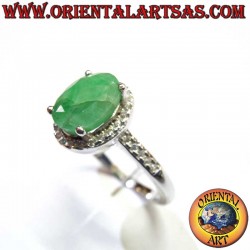 Luxurious Sterling Silver 925 ring featuring a vivid, oval Natural Emerald as the centerpiece. The gem is beautifully framed by a sparkling Zircon halo. A timeless classic, symbolizing love and success.